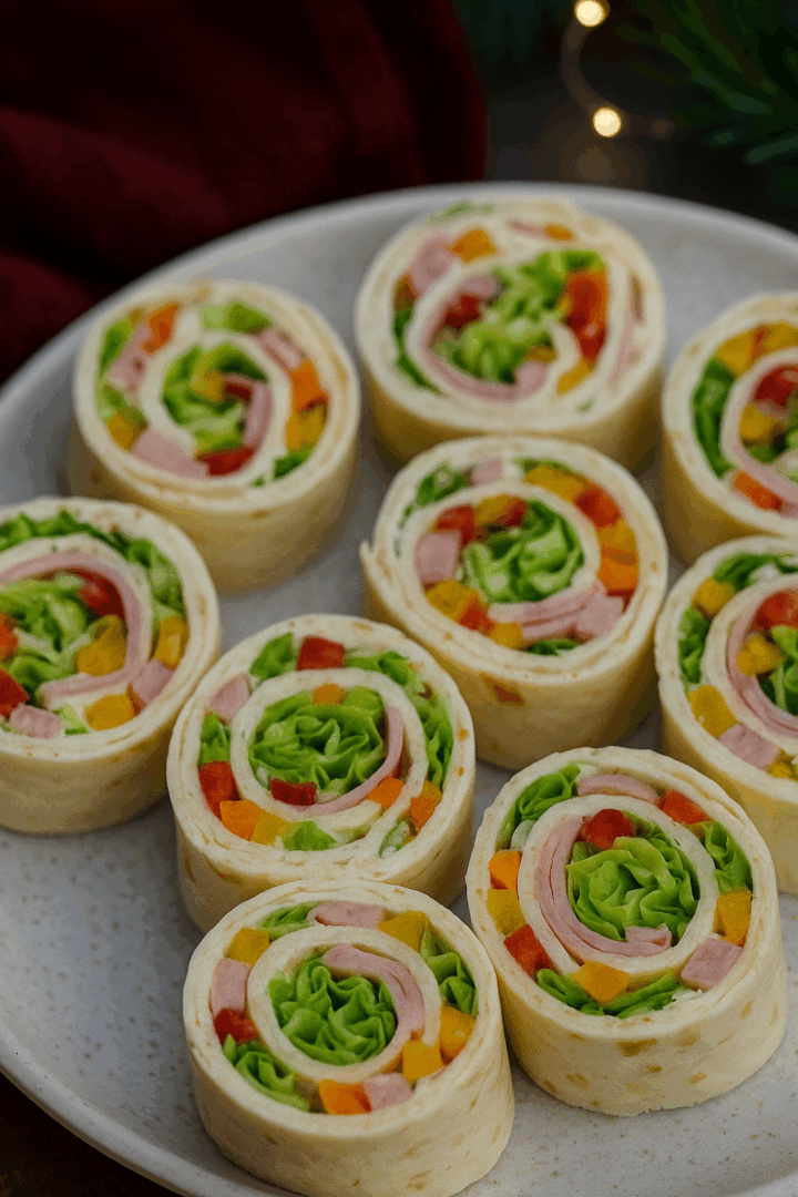 Świąteczne tortilla rollsy z szynką i warzywami