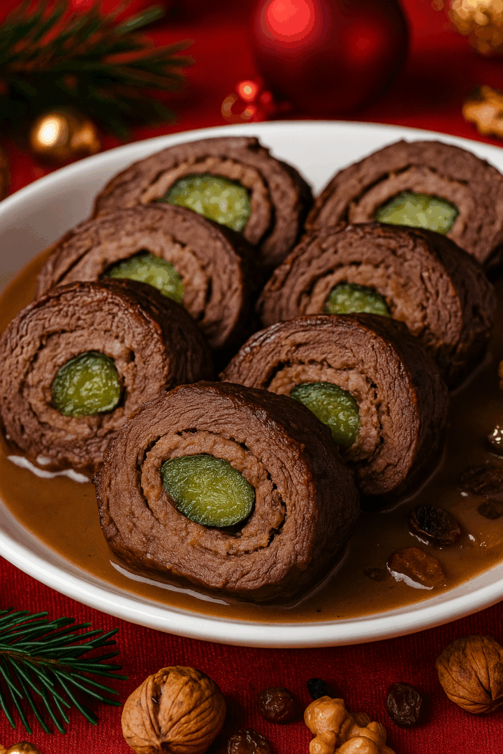 Świąteczne zrazy wołowe z ogórkiem i sosem