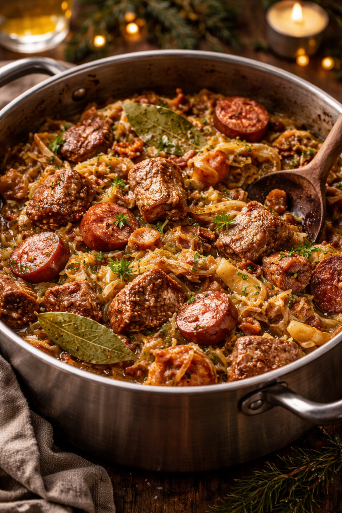 Składniki: 1 kg kapusty kiszonej 500 g kapusty białej 600 g karkówki lub łopatki wieprzowej 300 g kiełbasy…