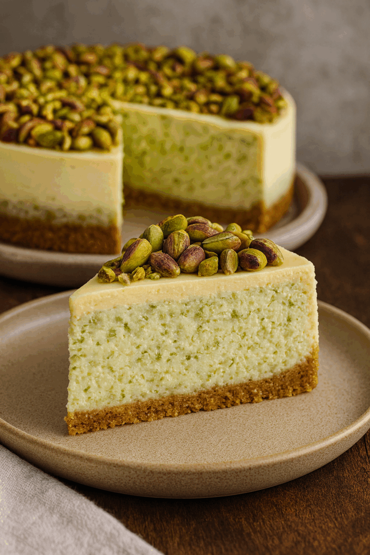 Świąteczny sernik pistacjowy na ciasteczkowym spodzie