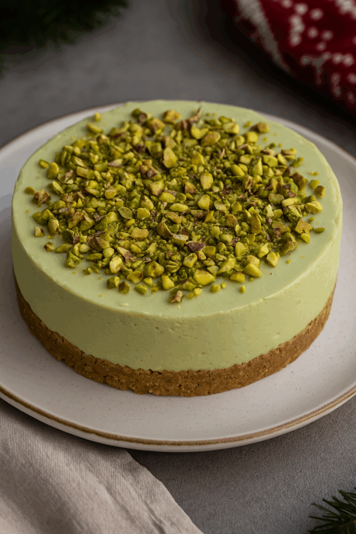 Świąteczny sernik pistacjowy na ciasteczkowym spodzie