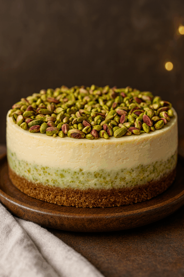 Świąteczny sernik pistacjowy z chrupiącym spodem i waniliową masą