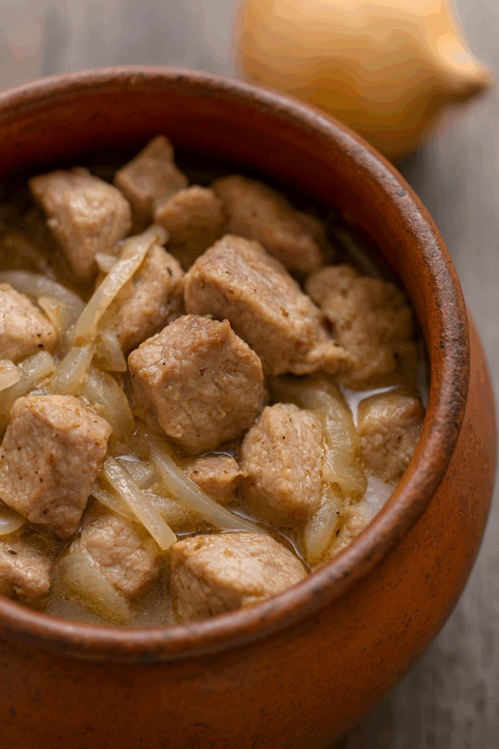 Świeżonka – duszone mięso wieprzowe z cebulą- smak dzieciństwa