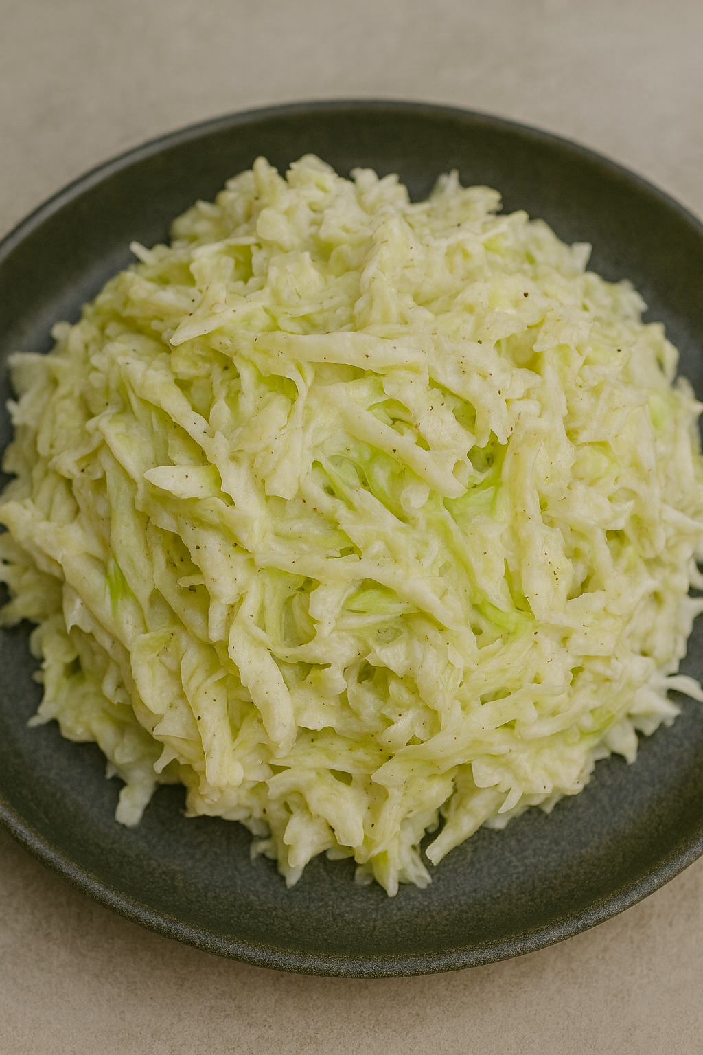 Pokrój w cienkie plasterki lub zetrzyj na grubych oczkach tarki.