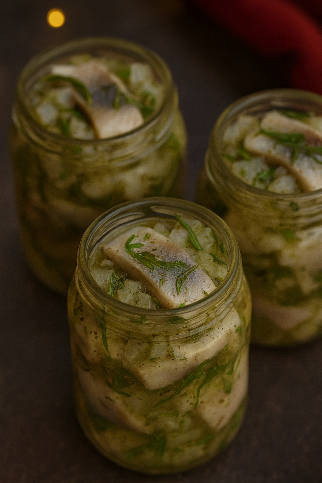 Składniki: Śledzie 500 g filetów śledziowych matjas 1,5–2 szklanki zimnej wody do moczenia Zalewa ziołowa 3 duże cebule…