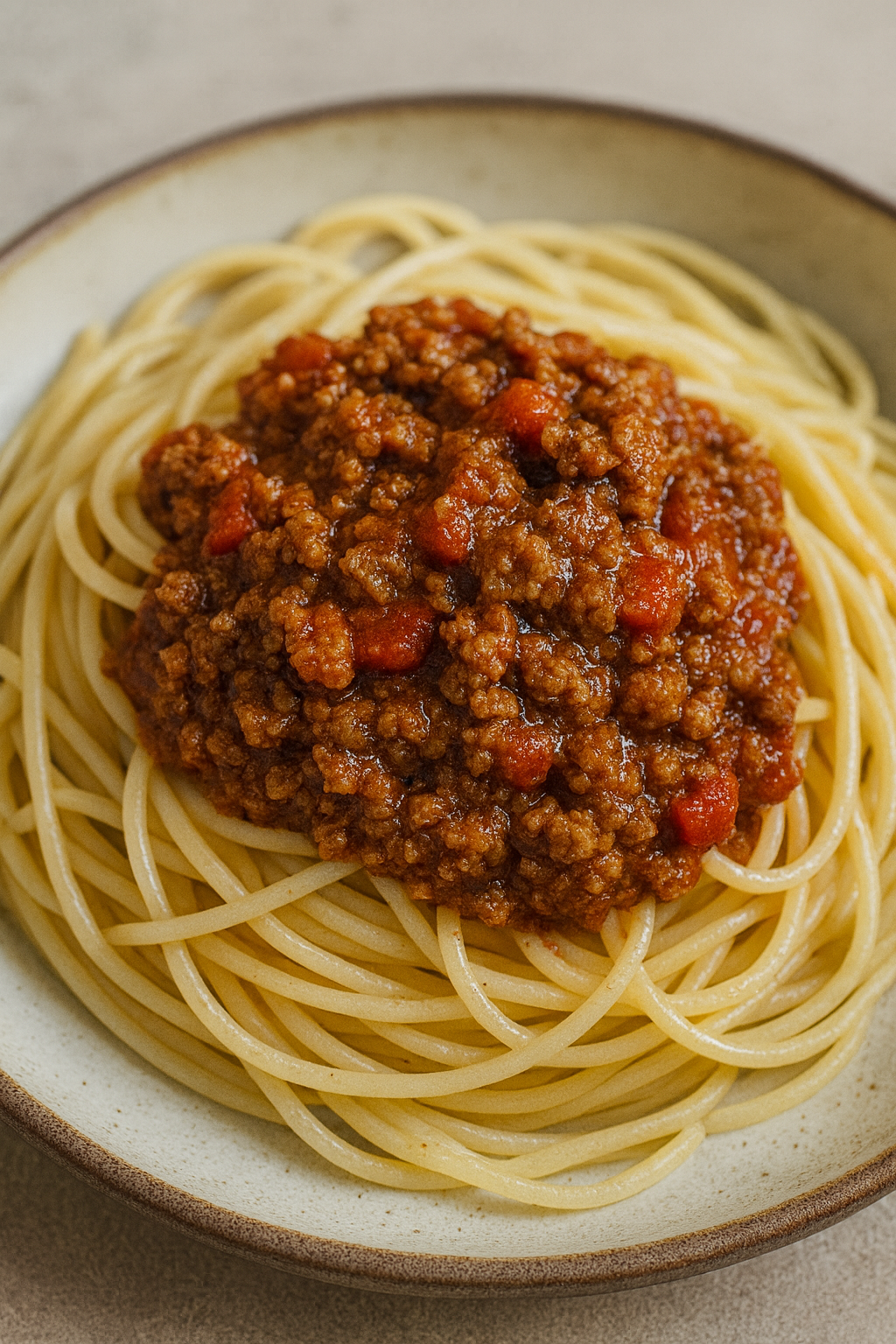 Składniki: 400 g makaronu spaghetti 500 g mielonego mięsa (najlepiej wołowo-wieprzowego) 1 cebula 2 ząbki czosnku 1 marchewka…
