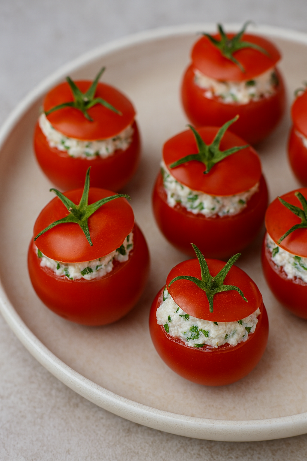 Składniki: 12 małych pomidorków (koktajlowych lub malinowych) 150 g twarogu półtłustego lub serka śmietankowego 2 łyżki jogurtu naturalnego…