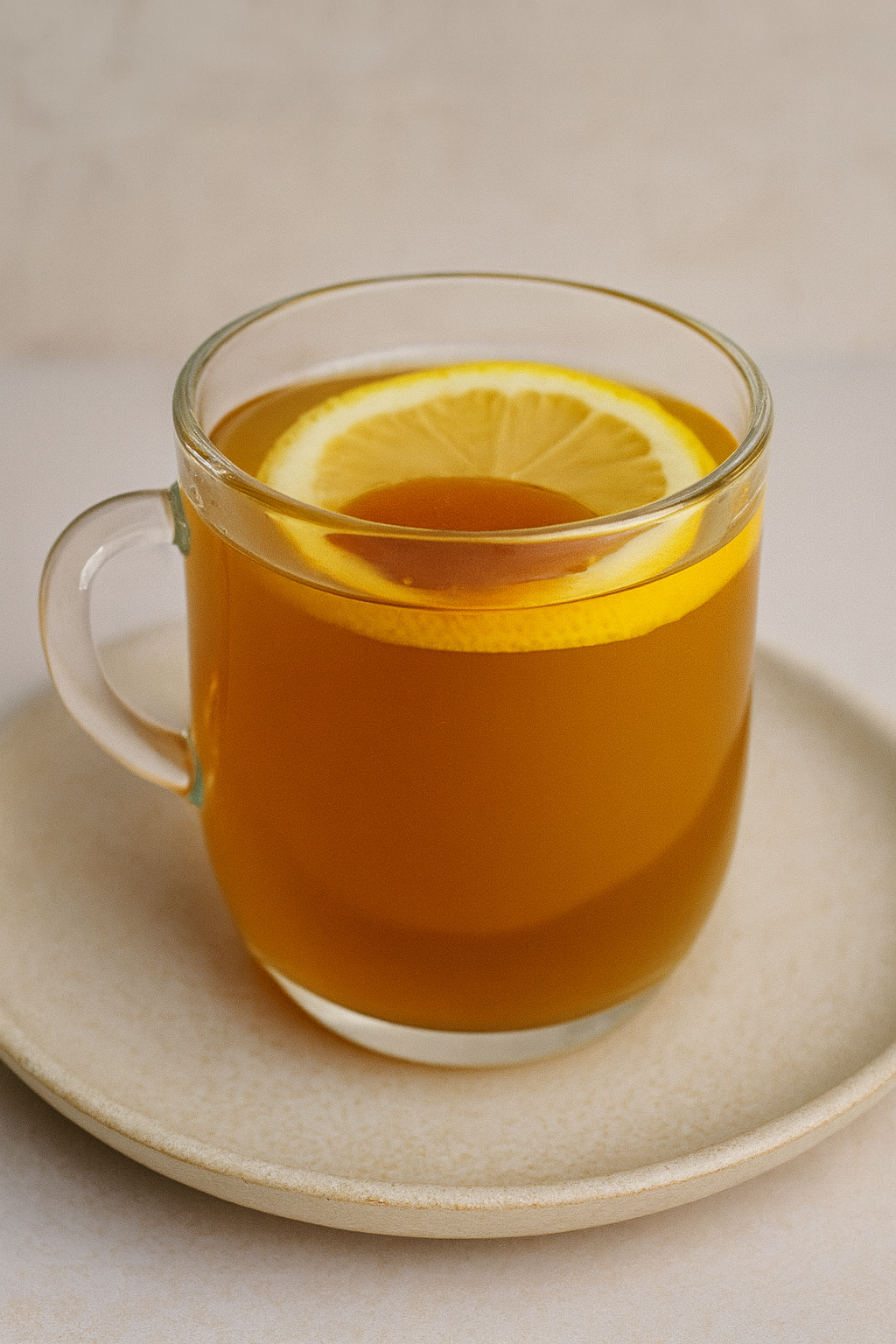 Składniki: 1 szklanka gorącej wody (ok. 250 ml) 1 torebka czarnej herbaty (lub 1 łyżeczka liściastej) 1–2 plasterki…