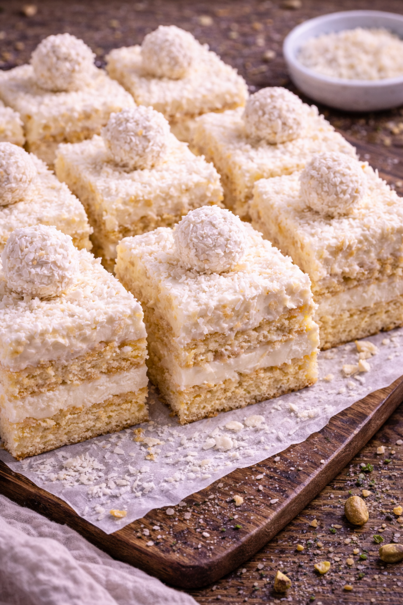 Składniki: Warstwa kokosowa 300 g serka mascarpone 250 ml śmietanki 36% 120 g wiórków kokosowych 3 łyżki cukru…