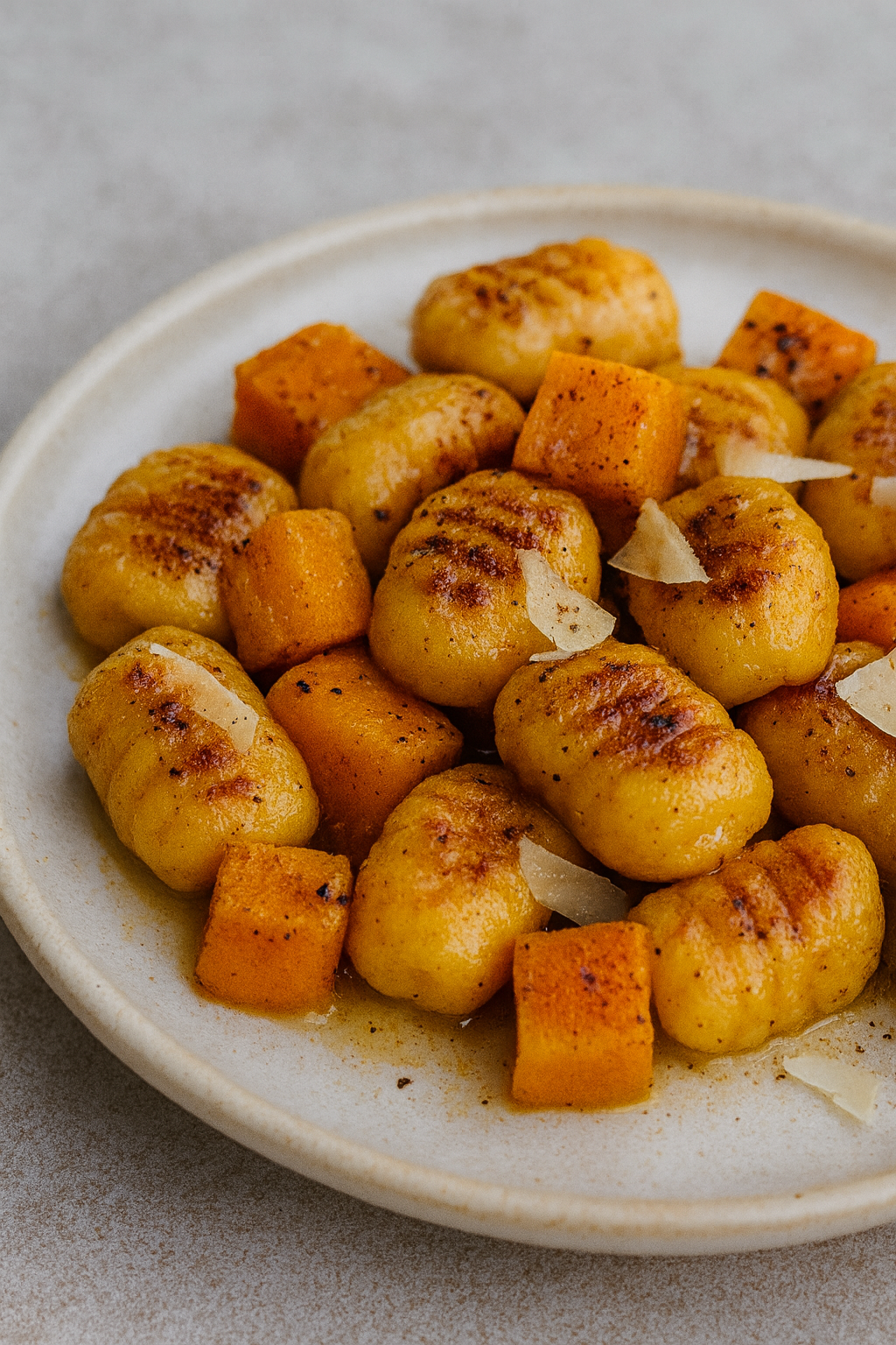 Składniki: Na gnocchi: 500 g dyni (upieczonej, np. hokkaido) 200 g ziemniaków ugotowanych i przeciśniętych przez praskę 200–250…