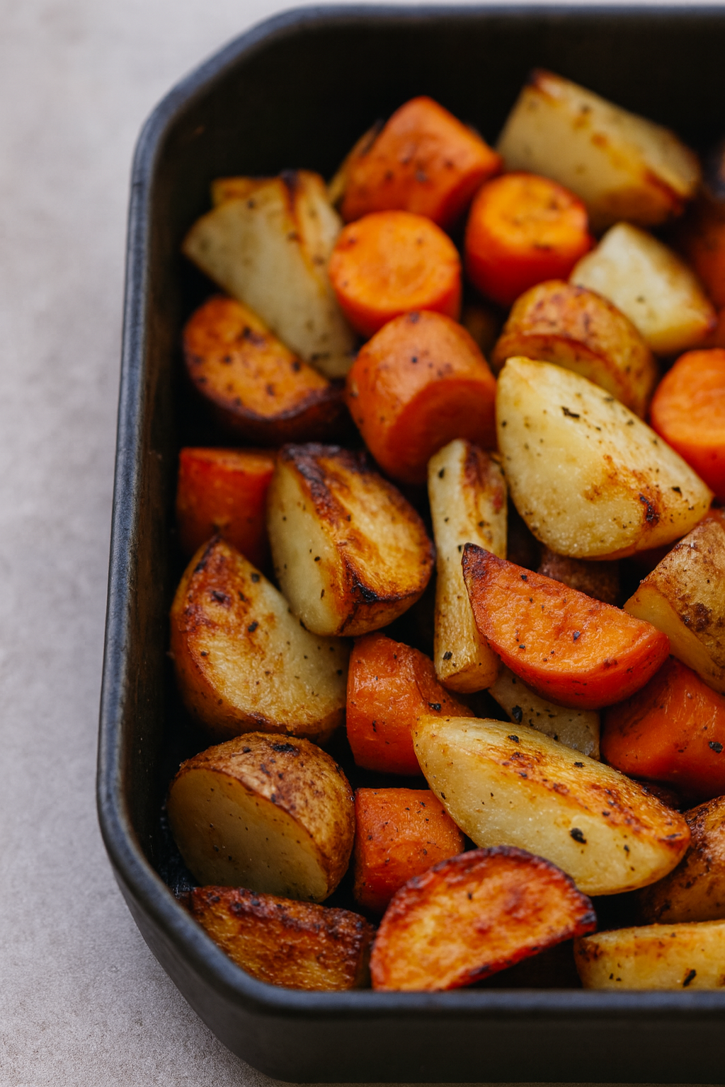 Składniki: 4 ziemniaki (średnie) 3 marchewki 1 pietruszka lub pasternak 3 łyżki oliwy z oliwek 1 łyżeczka suszonego…