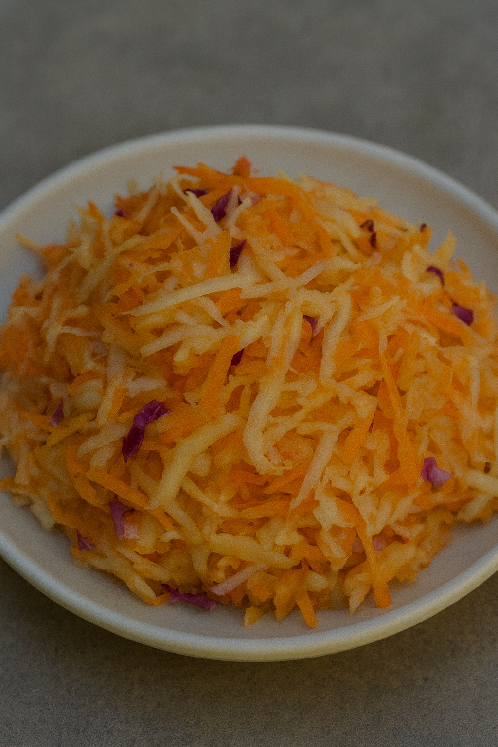 Składniki: ½ małej główki białej kapusty (ok. 400–500 g) 2 marchewki 1 jabłko ¼ czerwonej cebuli (opcjonalnie –…