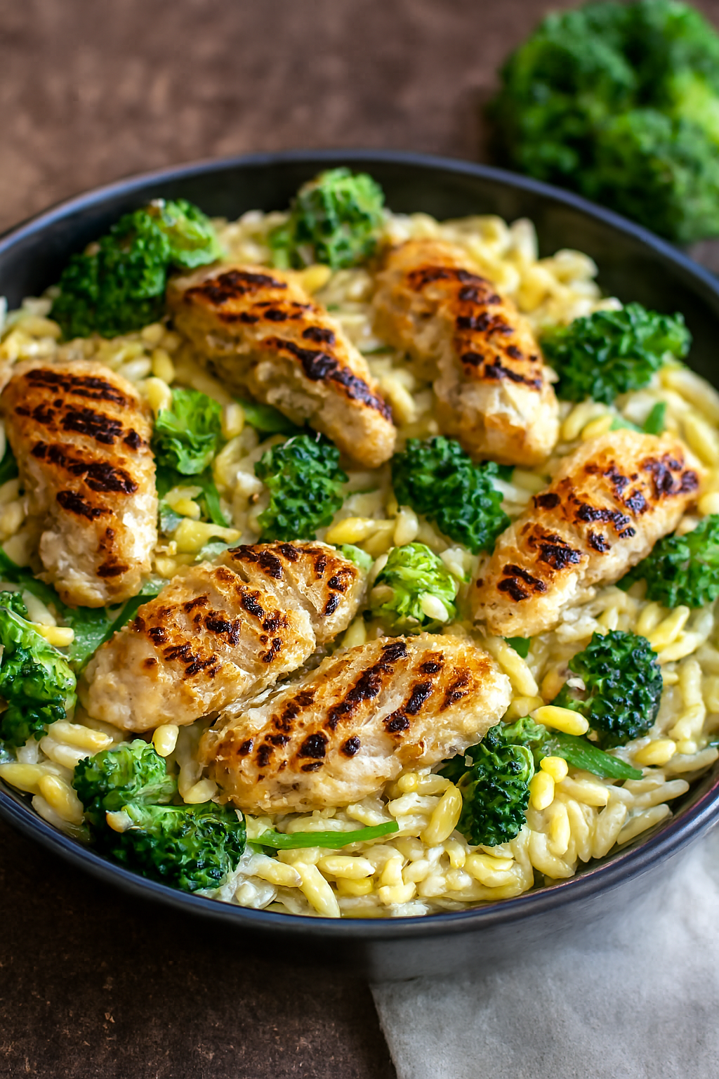 Składniki: 200 g makaronu orzo 2 pojedyncze piersi z kurczaka 1 mały brokuł 1 ząbek czosnku (drobno posiekany)…