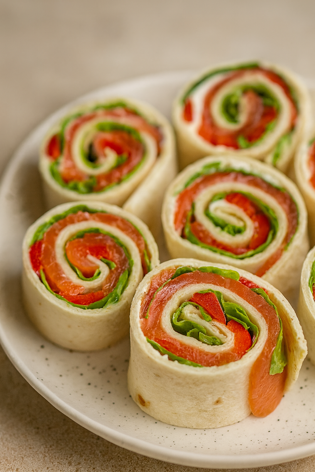 Składniki: (na ok. 10-12 szt.) 2 tortille pszenne lub pełnoziarniste 150 g wędzonego łososia w plastrach 100 g…