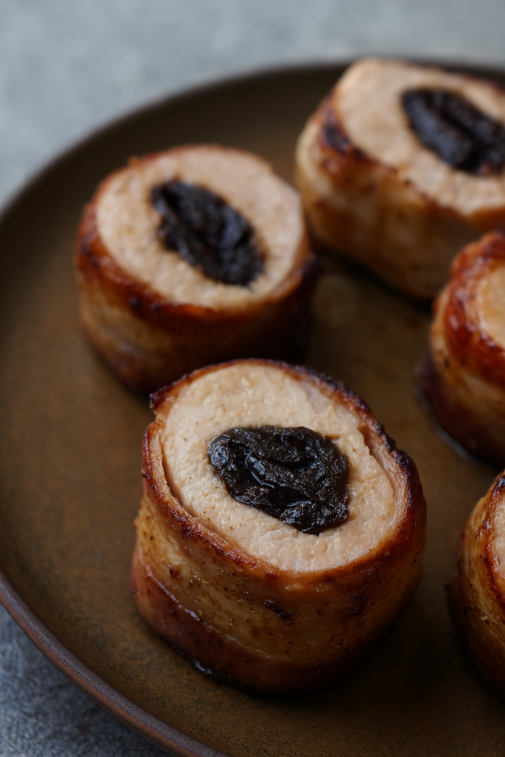 Składniki 1 polędwiczka wieprzowa (ok. 500 g) ok. 150 g plastrów boczku wędzonego (cienko krojonego) 10–12 suszonych śliwek…