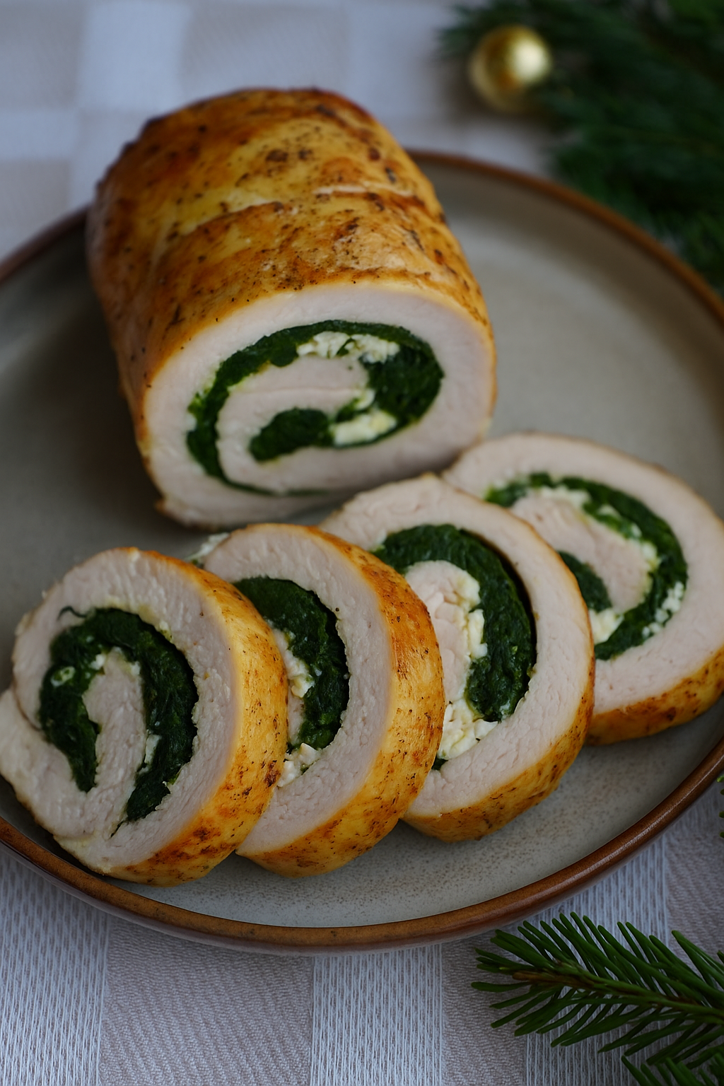 Składniki: 1 duża pierś z kurczaka (ok. 800 g) 250 g mrożonego szpinaku 150 g sera feta 2…