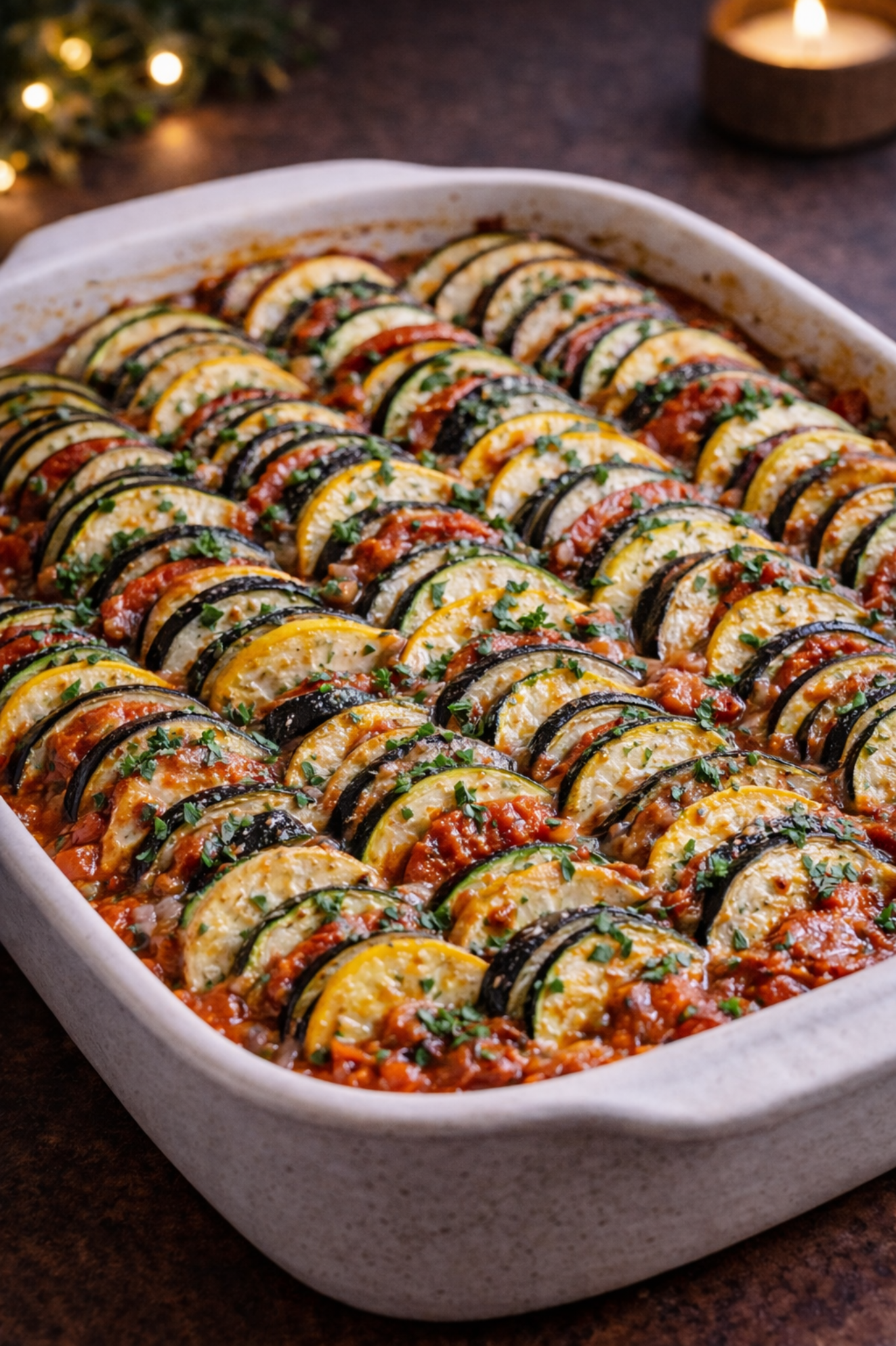 Składniki: (4 porcje) 1 średni bakłażan 1 duża cukinia (zielona) 1 żółta cukinia lub kabaczek 3–4 dojrzałe pomidory…