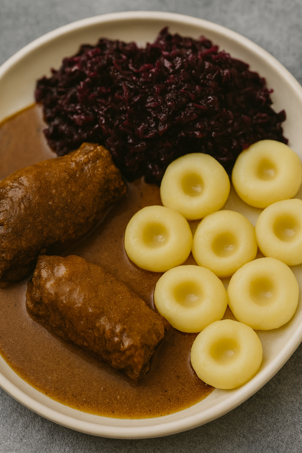 Składniki: 4 plastry wołowiny (np. z udźca lub rostbefu) 4 ogórki kiszone 4 plasterki boczku wędzonego 1 cebula…