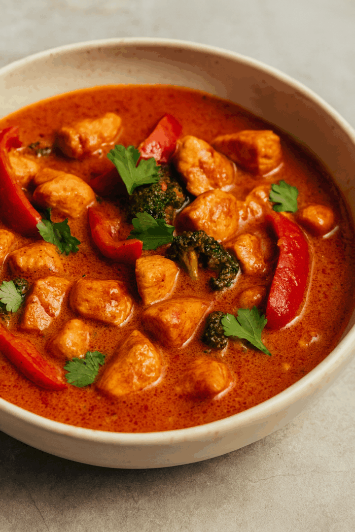 Tajskie czerwone curry z kurczakiem i warzywami – aromatyczne, kremowe i lekko pikantne.