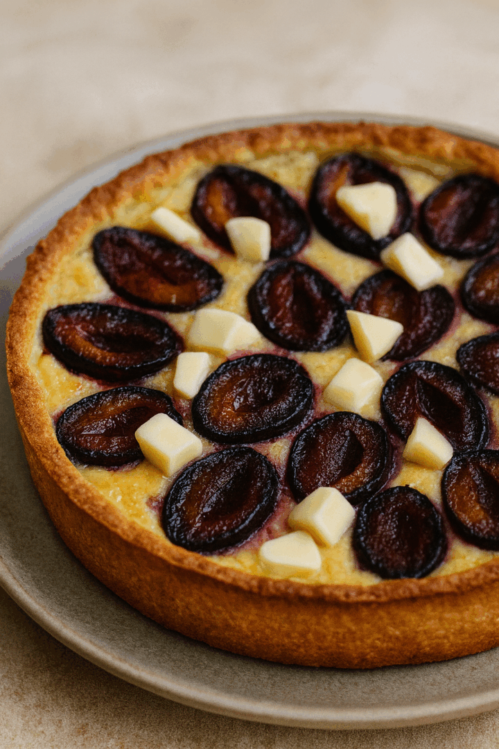 Piecz w 180°C przez 30–35 minut, aż masa się zetnie, a śliwki lekko puszczą sok.