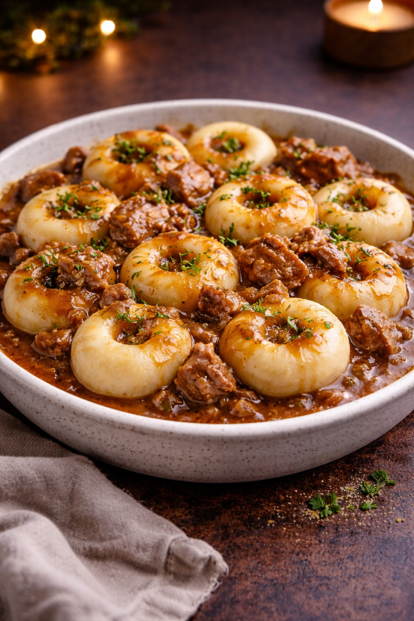 Kluski śląskie z gulaszem wołowym