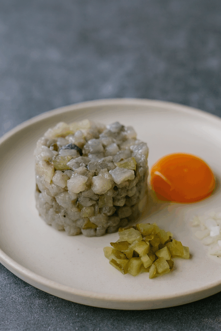 Uformuj porcję tatara (np. przy pomocy obręczy kuchennej).