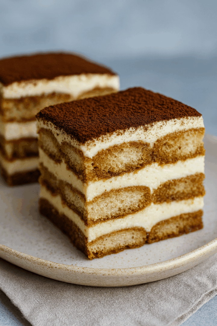 W Twojej wersji są aż trzy warstwy biszkoptów i trzy warstwy kremu, więc deser wychodzi wysoki i efektowny – dokładnie jak na Twoim zdjęciu.