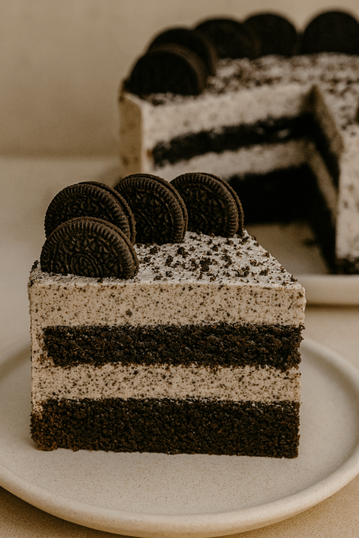 Udekoruj wierzch tortu ciasteczkami Oreo – połówkami lub całymi.
