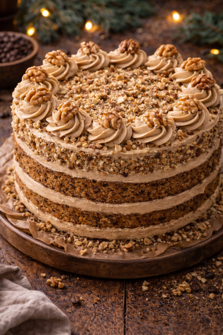 Tort orzechowy z kremem kawowym (forma ok. 20–22 cm)