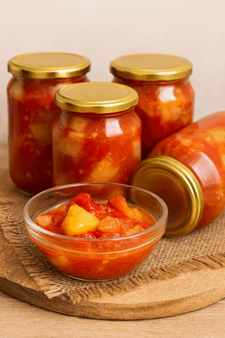 Gorącą masę przełóż do wyparzonych słoików, zostawiając ok. 1 cm luzu.