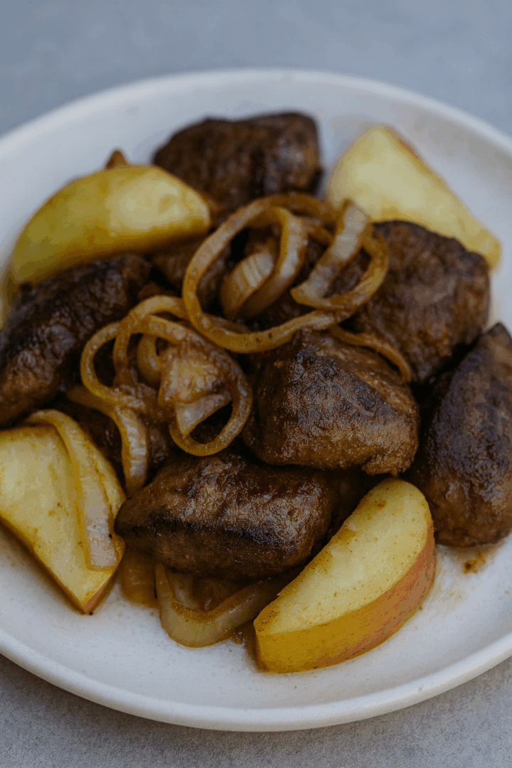 Wątróbka wieprzowa smażona z cebulą i jabłkiem