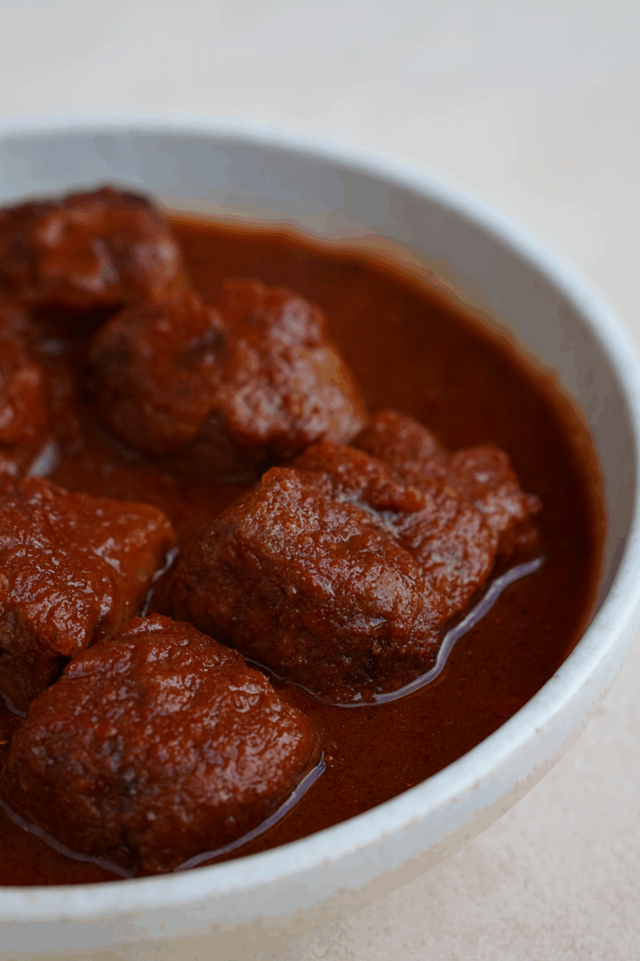 Duszenie mięsa – przełóż mięso do garnka lub naczynia żaroodpornego, zalej sosem BBQ. Duś pod przykryciem na małym ogniu ok. 1,5 godziny (lub piecz w piekarniku w 160°C przez 2 godziny), aż mięso będzie miękkie.