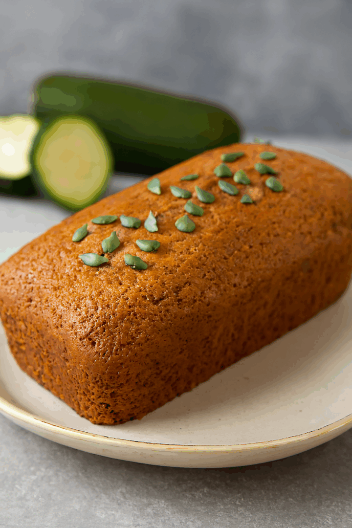 Wilgotne ciasto z cukinii z pestkami dyni – delikatne, lekko korzenne i proste w przygotowaniu.