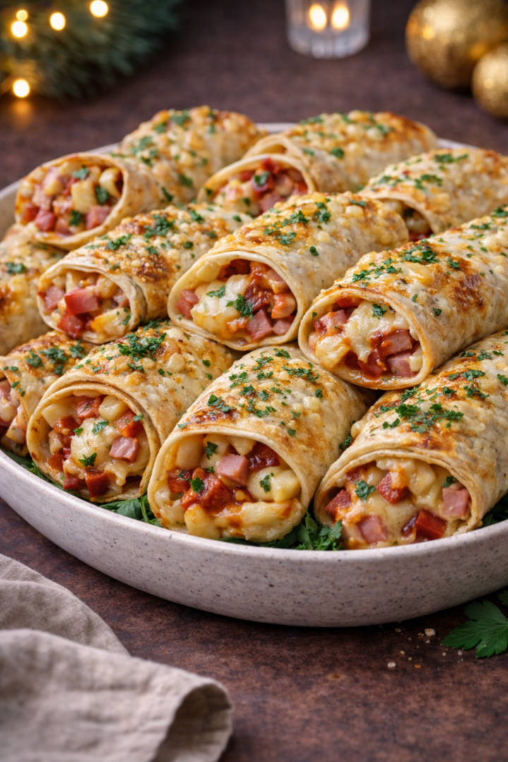 Zapiekane naleśniki z szynką, serem i sosem pomidorowym