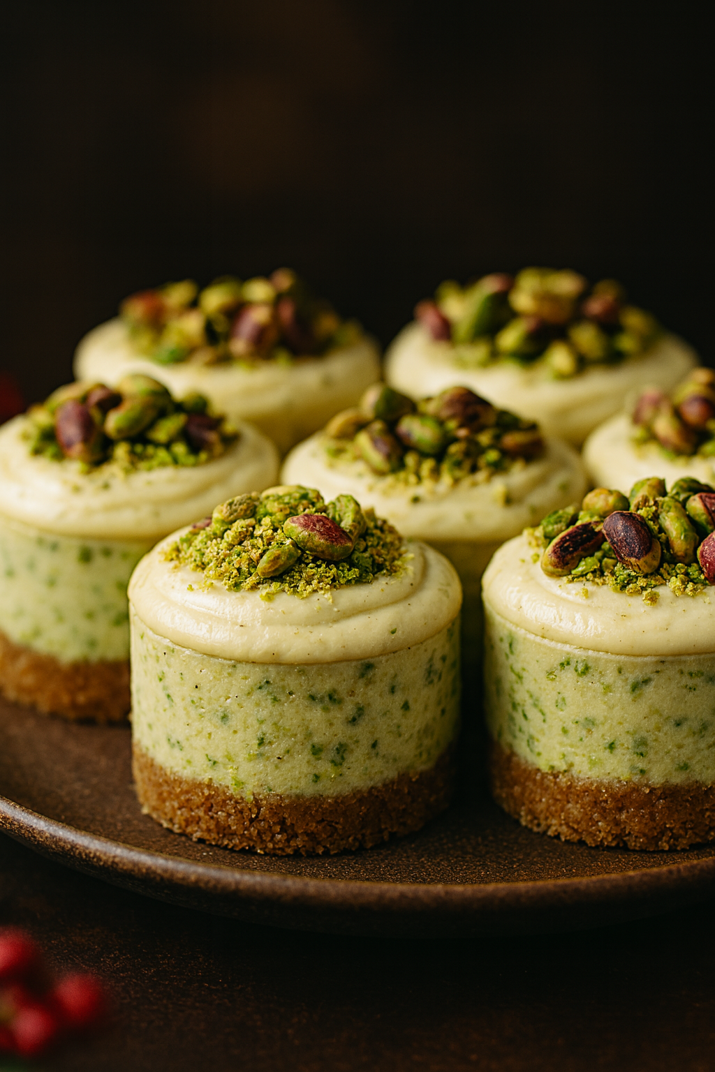 Świąteczne mini serniczki pistacjowe na herbatnikowym spodzie