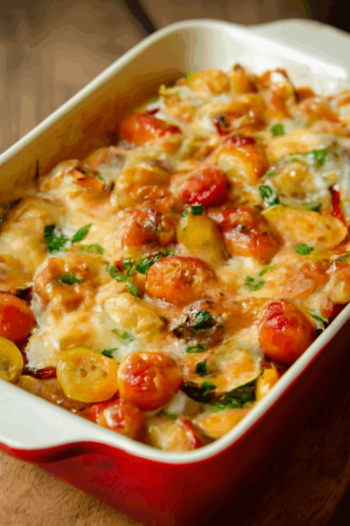 Zapiekanka z pomidorków koktajlowych, warzyw i sera