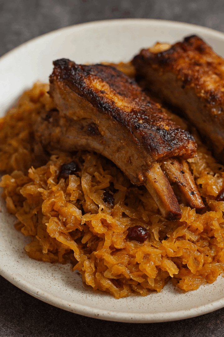 Żeberka pieczone w kapuście kiszonej