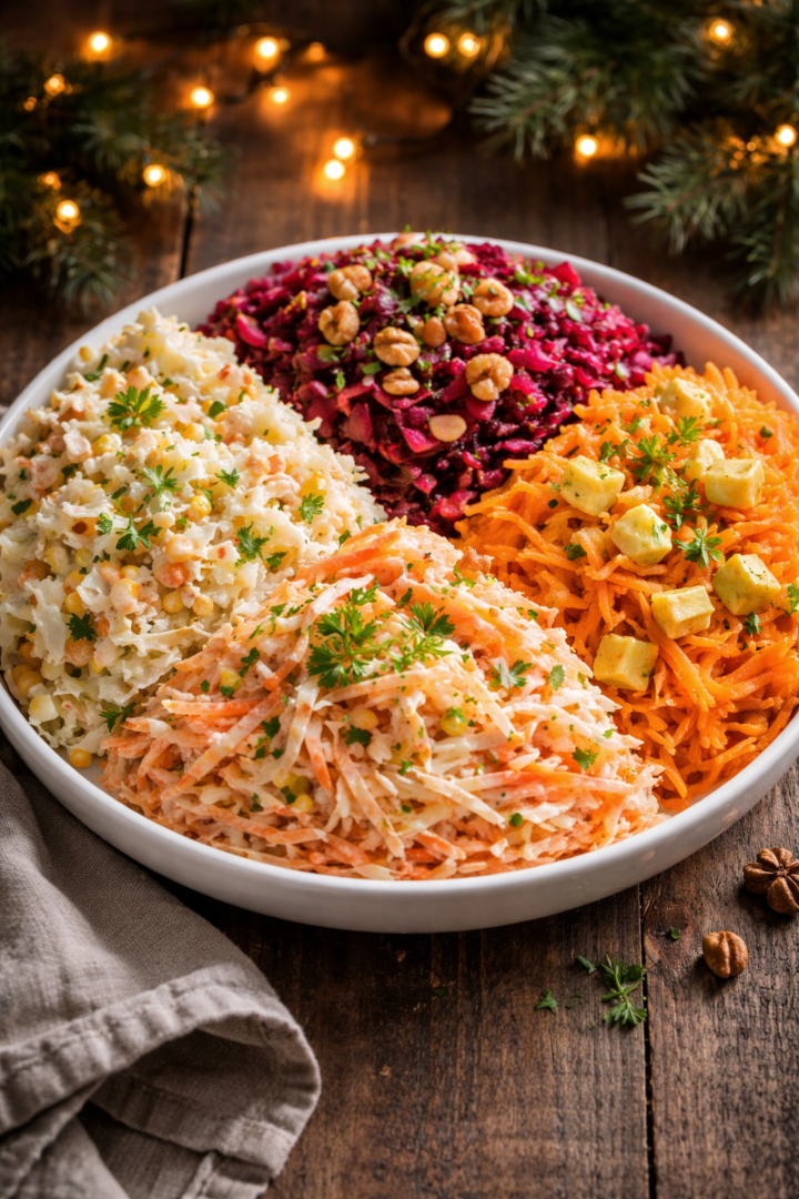 Przełóż surówki do jednej dużej misy w oddzielnych częściach lub do osobnych misek.