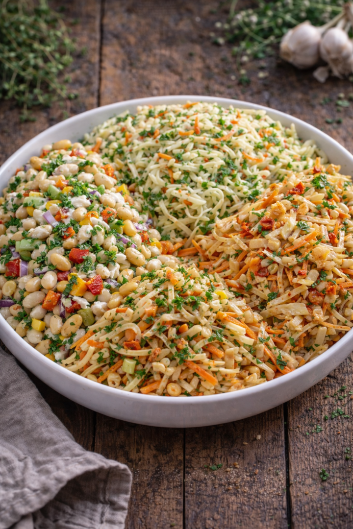 Ułóż cztery surówki w jednej misie w oddzielnych częściach.