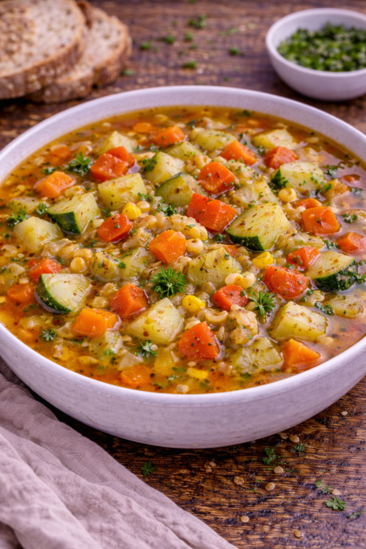 Zupa jarzynowa z cukinią, marchewką i kaszą