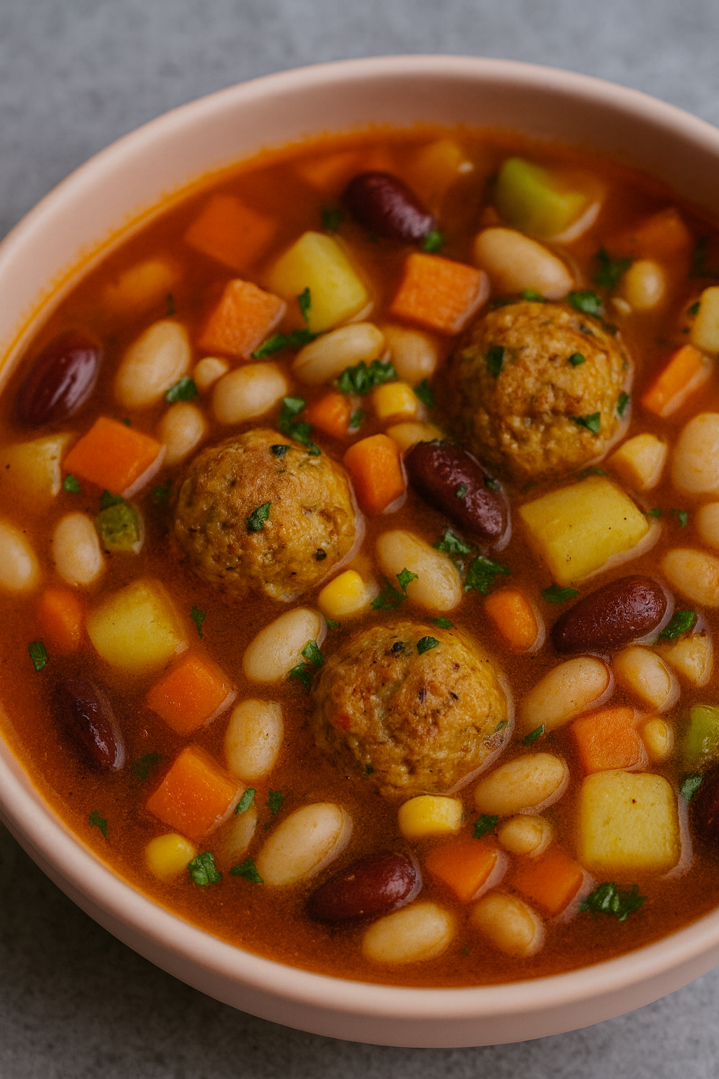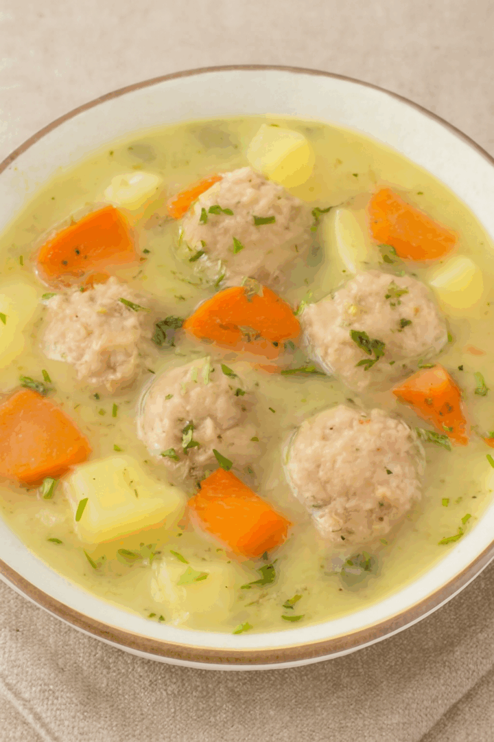 Zupa jarzynowa z kluskami mięsnymi jest gotowa do podania! Możesz podać ją z kawałkami świeżego chleba lub grzankami.