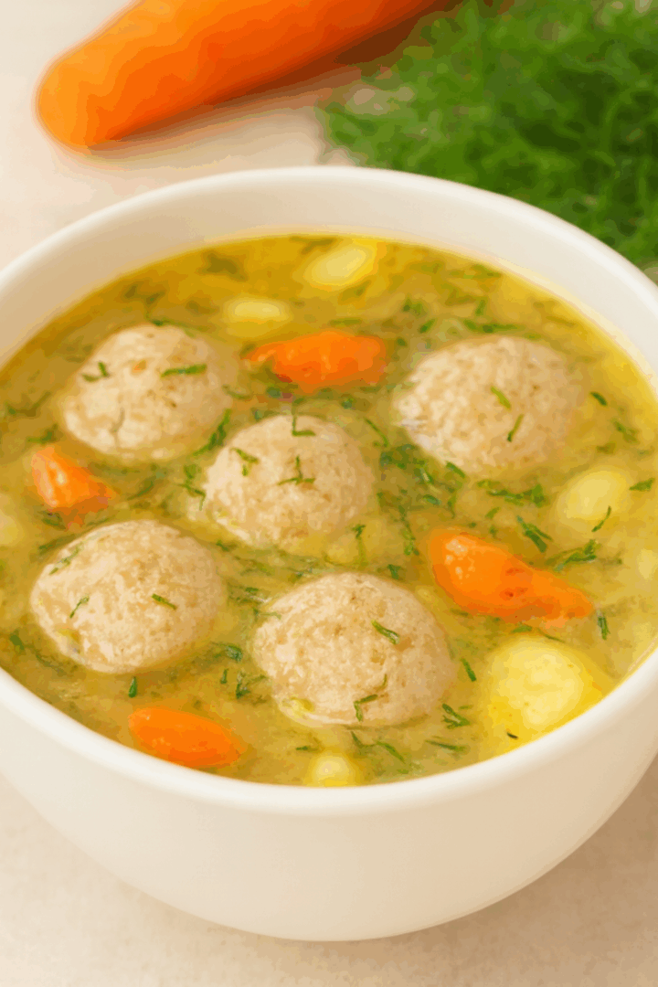 Dodaj pulpety do gotującej się zupy i gotuj 15–20 minut, aż będą miękkie i ugotowane w środku.