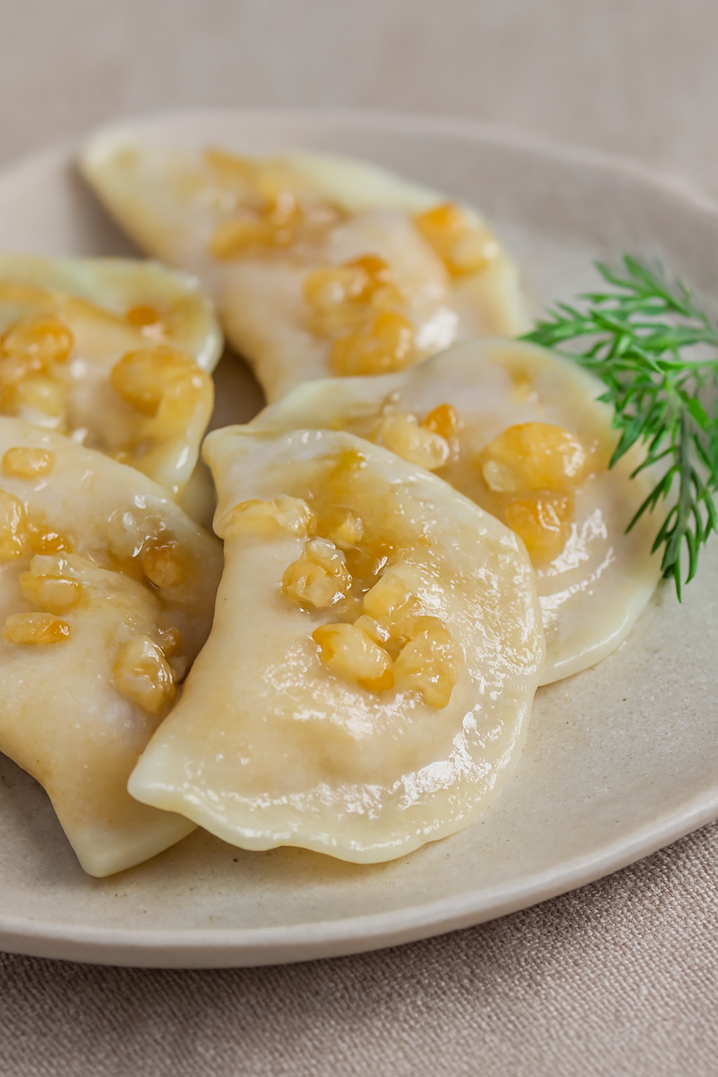 Składniki: Na ciasto: 2,5 szklanki mąki pszennej ok. ¾ szklanki gorącej wody 1 łyżka oleju szczypta soli Na…