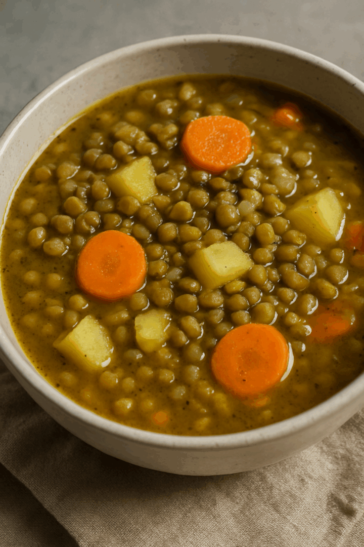 Gotuj na średnim ogniu ok. 30 minut, aż soczewica i warzywa będą miękkie.
